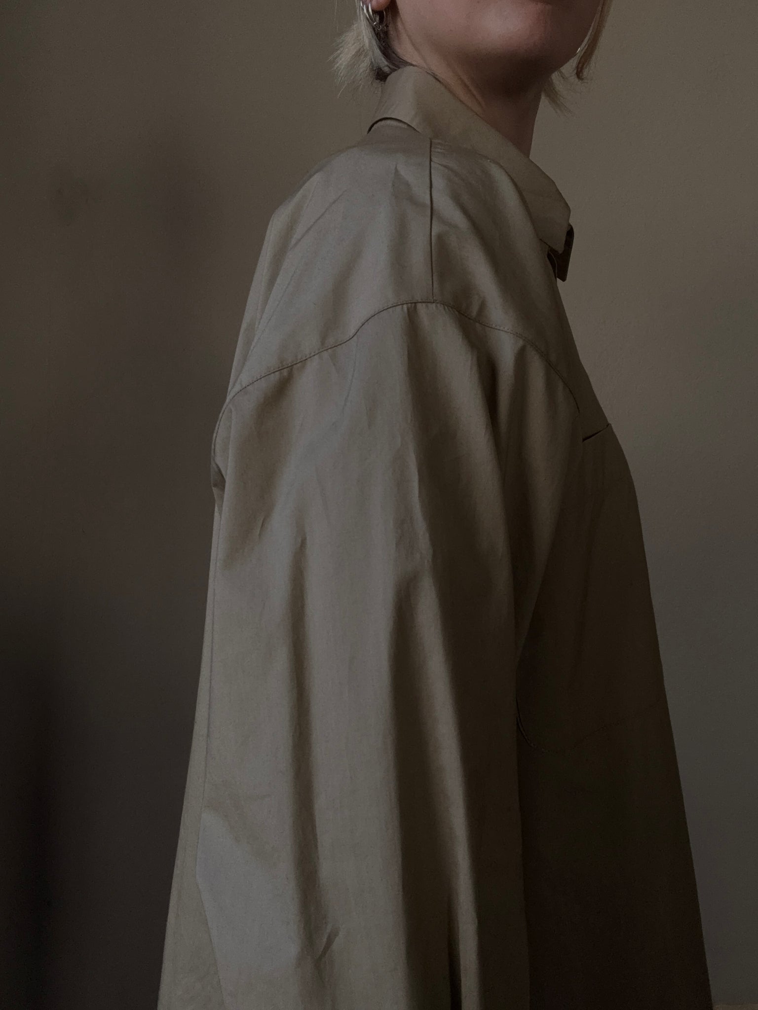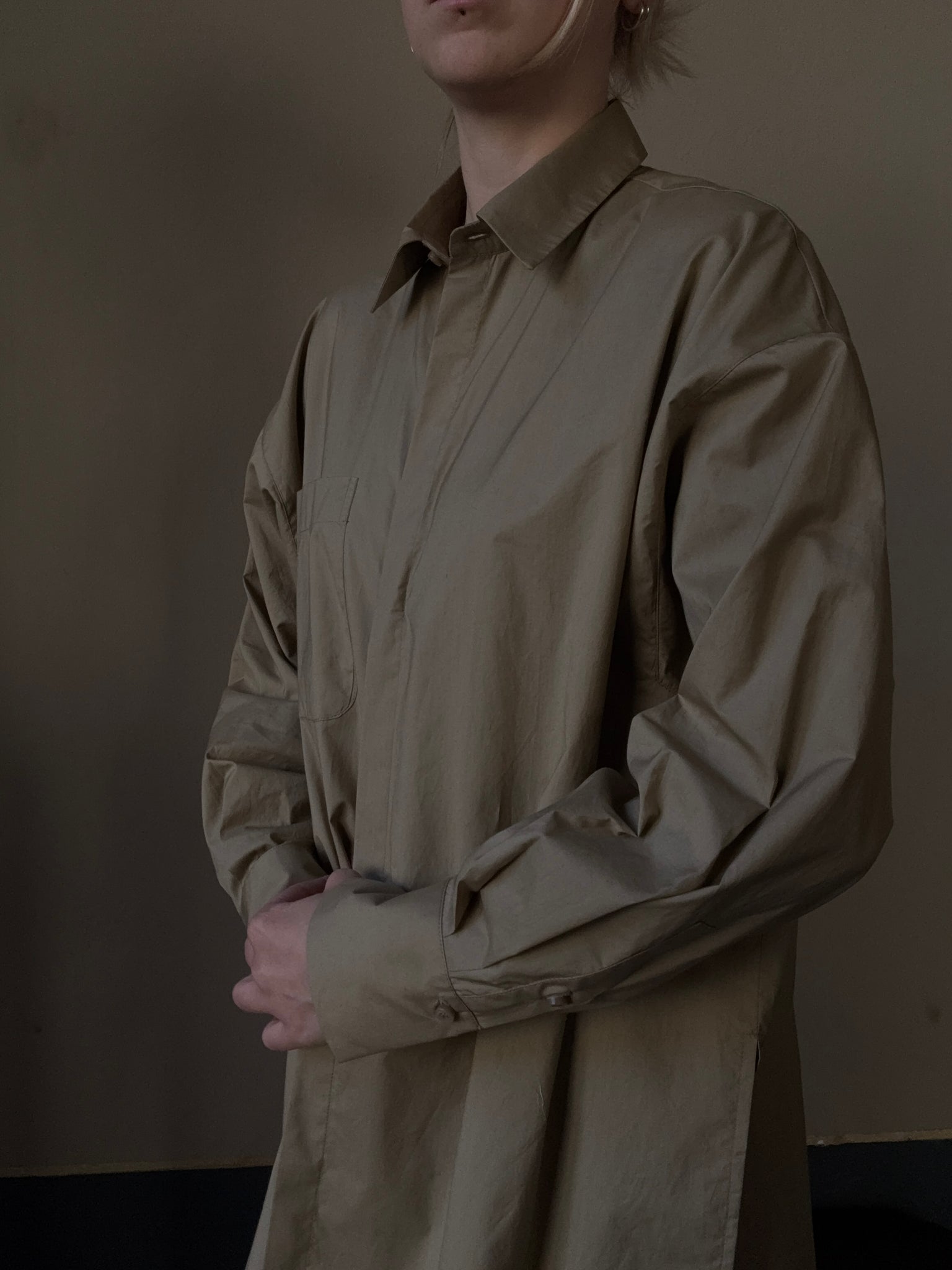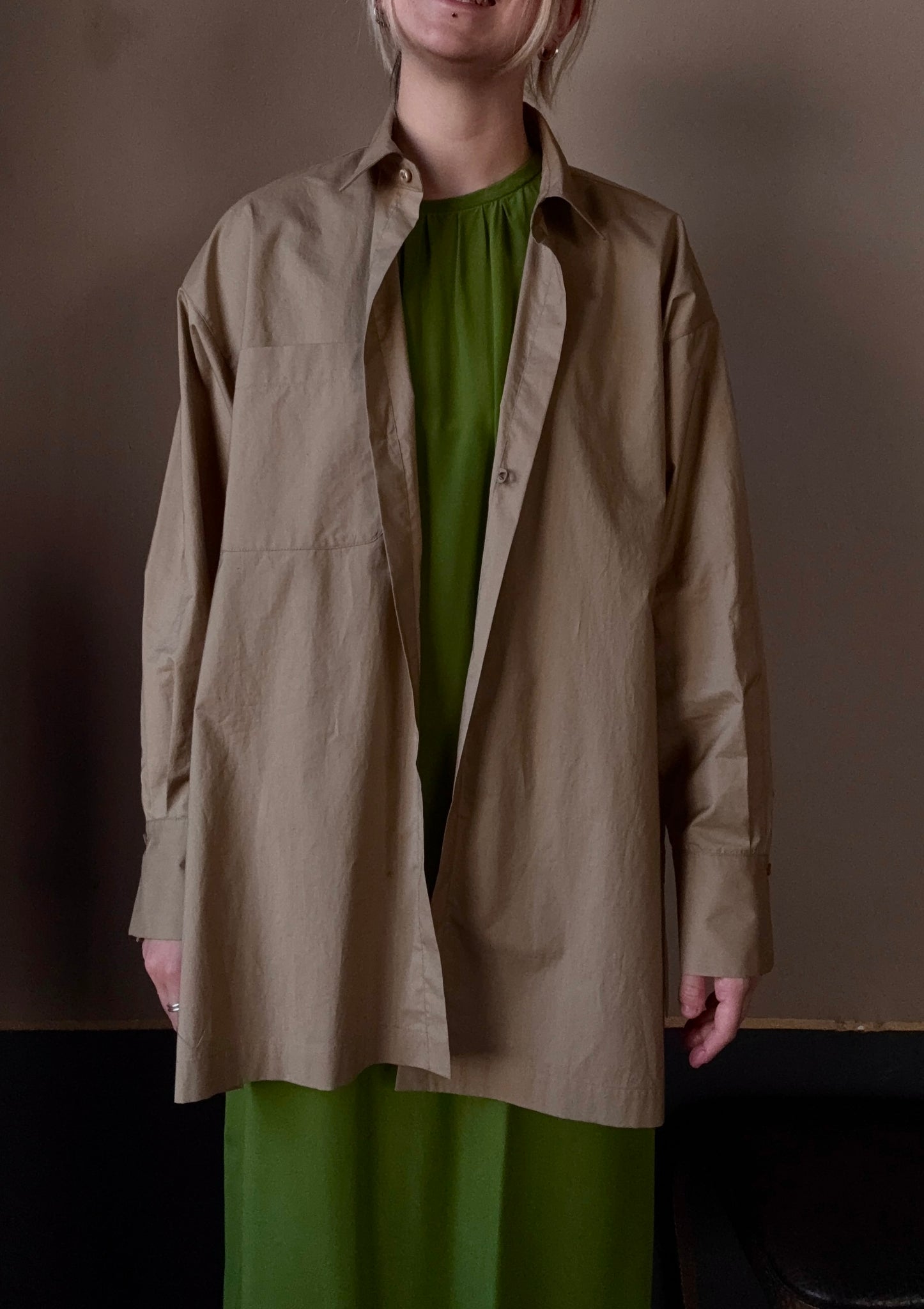 Camicia in cotone, vestibilità over, chiusa da un solo bottoncino si può portare anche come spolverino leggero