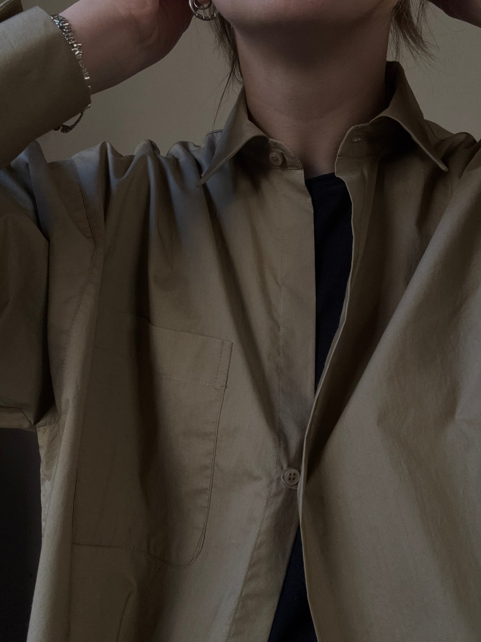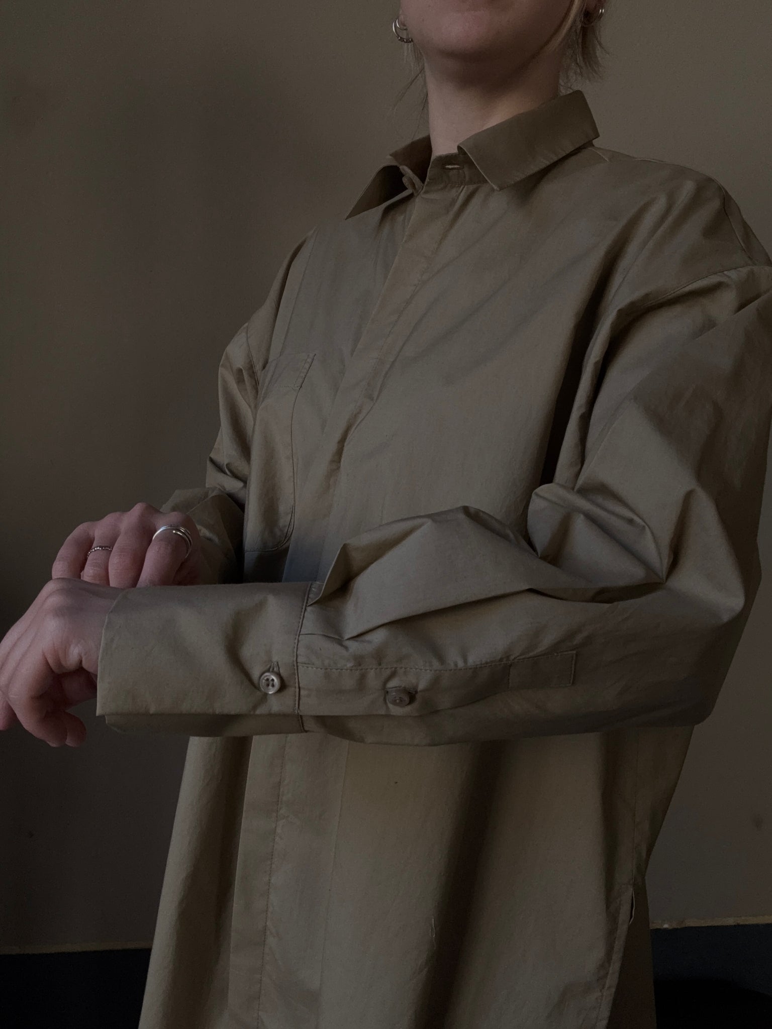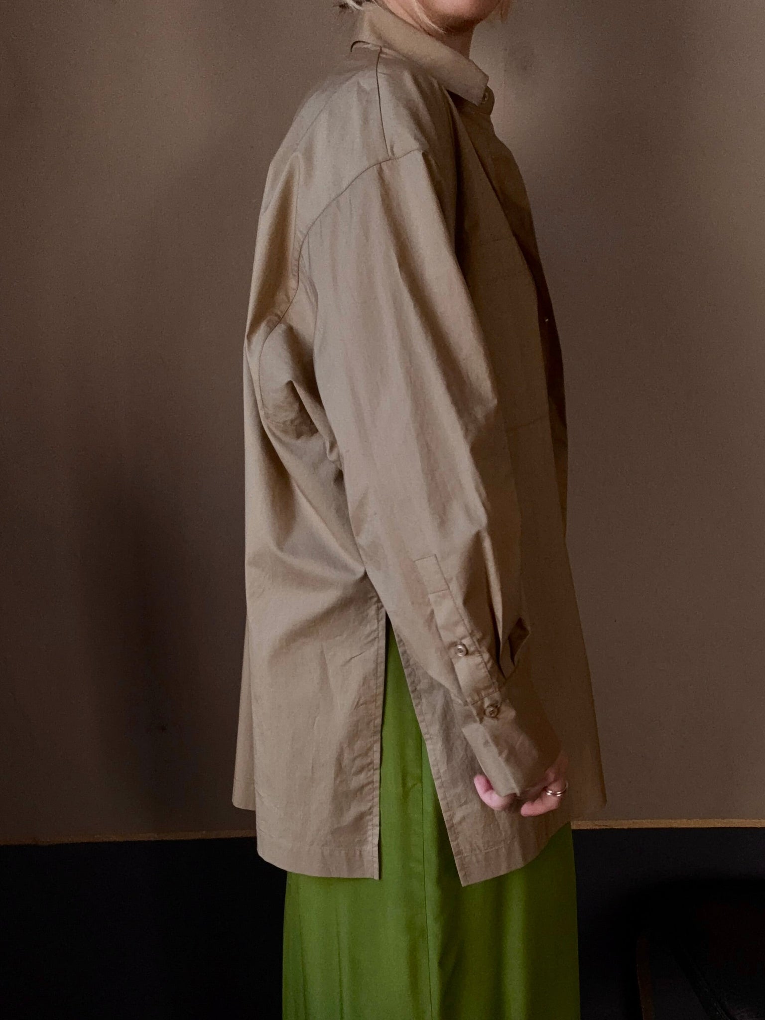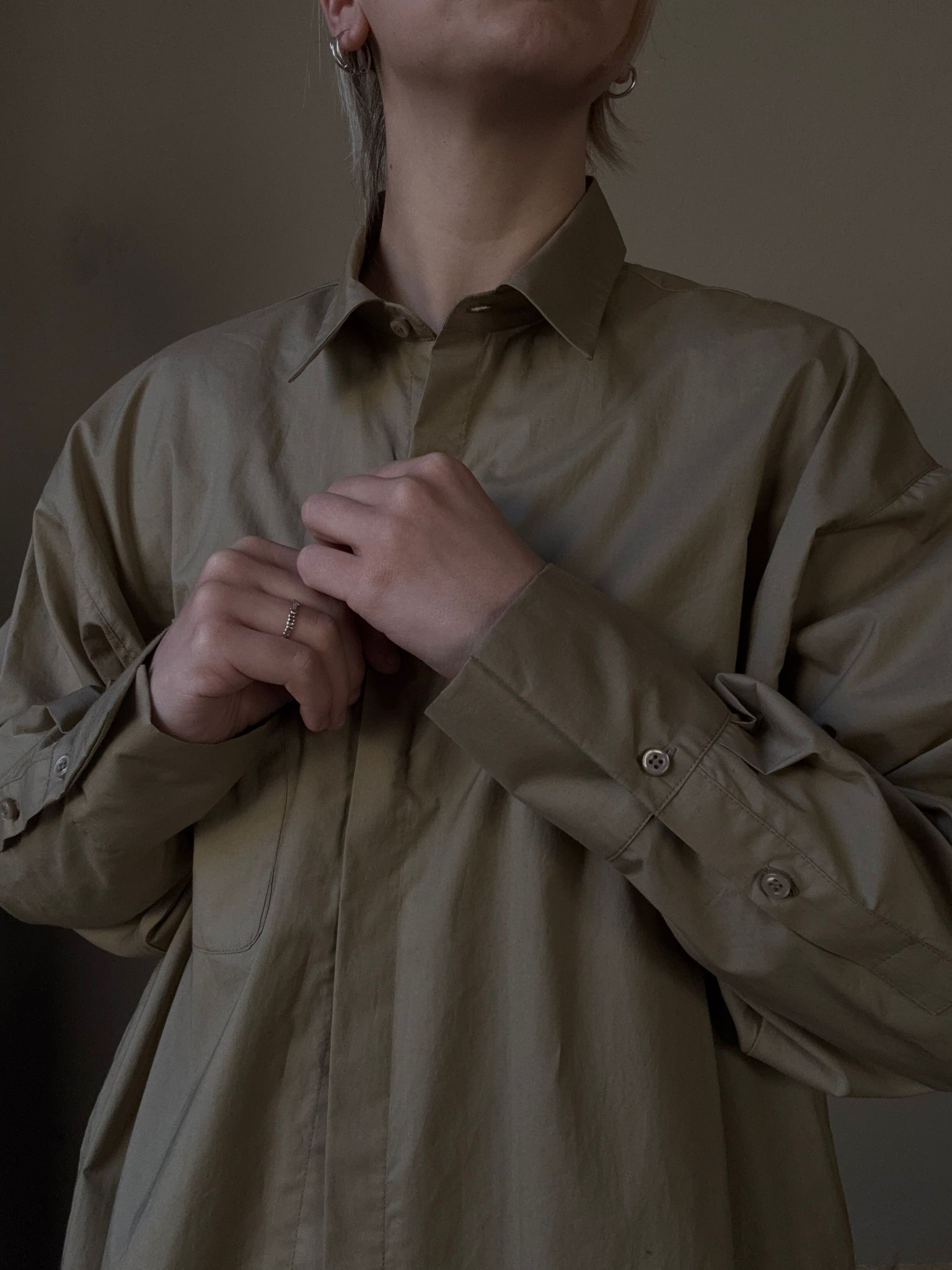 Camicia in cotone, vestibilità over, chiusa da un solo bottoncino si può portare anche come spolverino leggero
