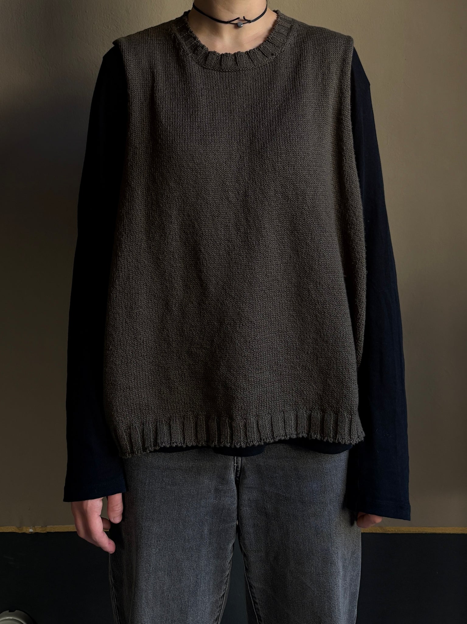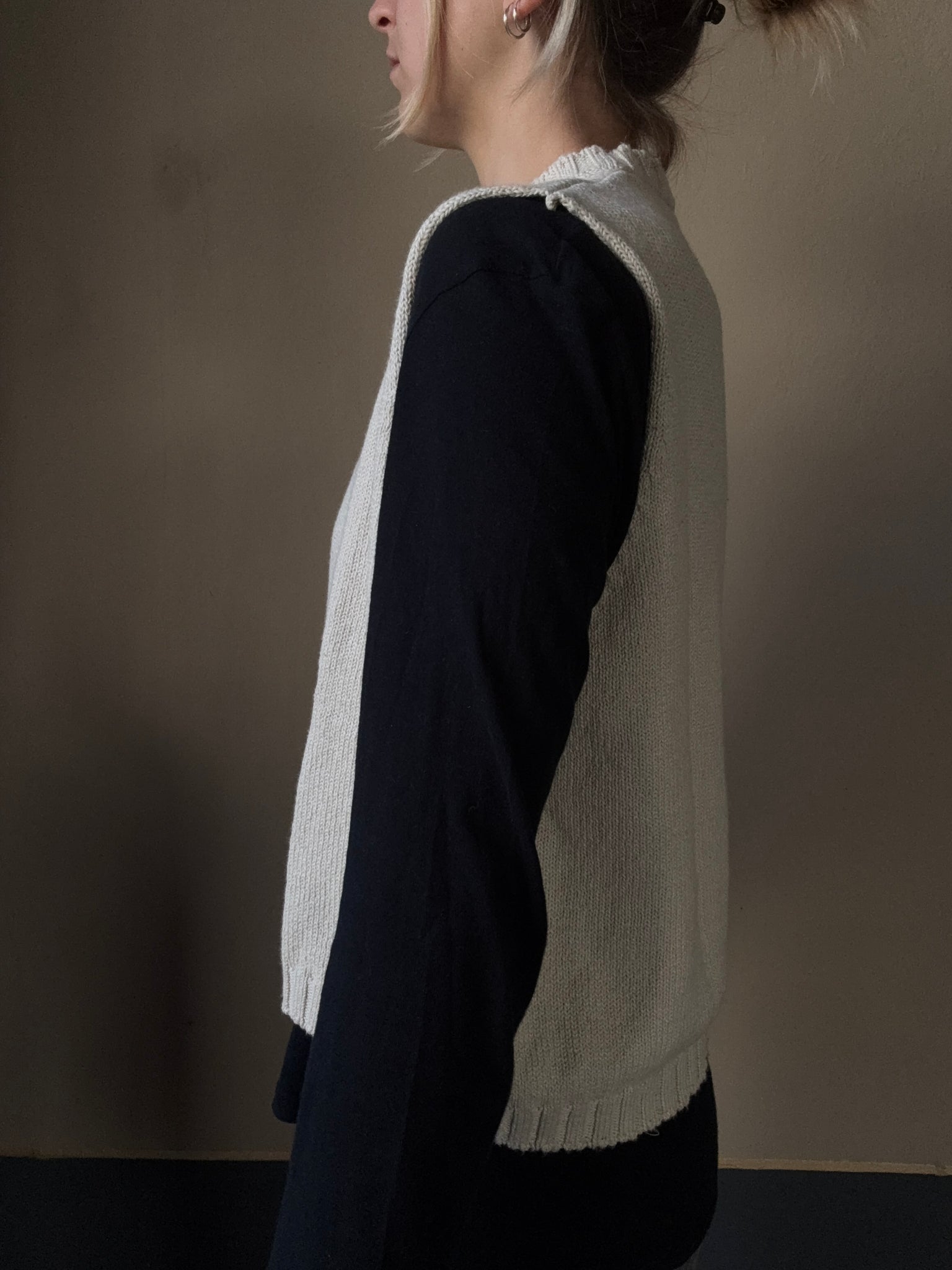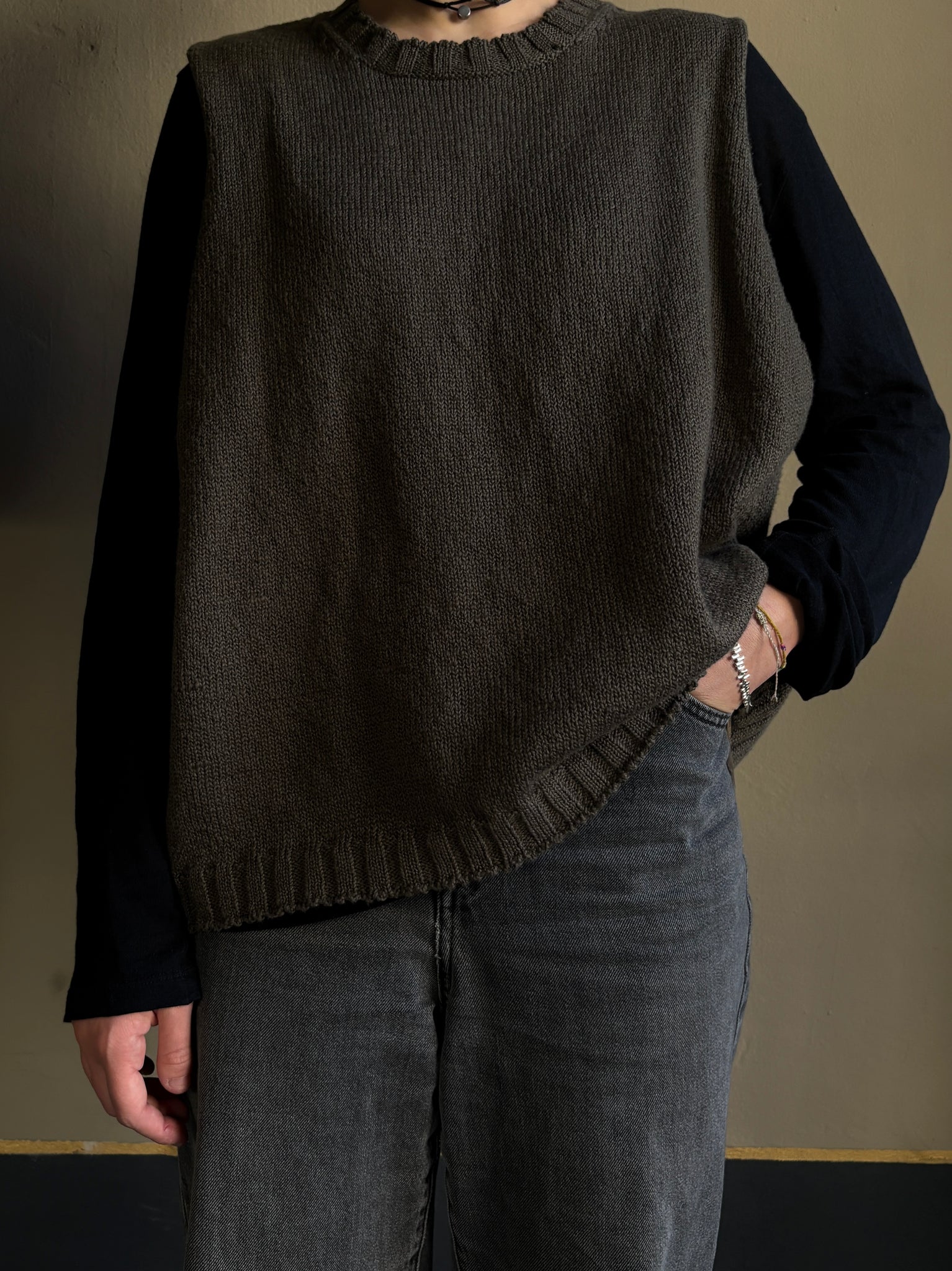 Gilet a scatola in cotone girocollo con giro manica molto ampio, perfetto da portare su t-shirt o camicie