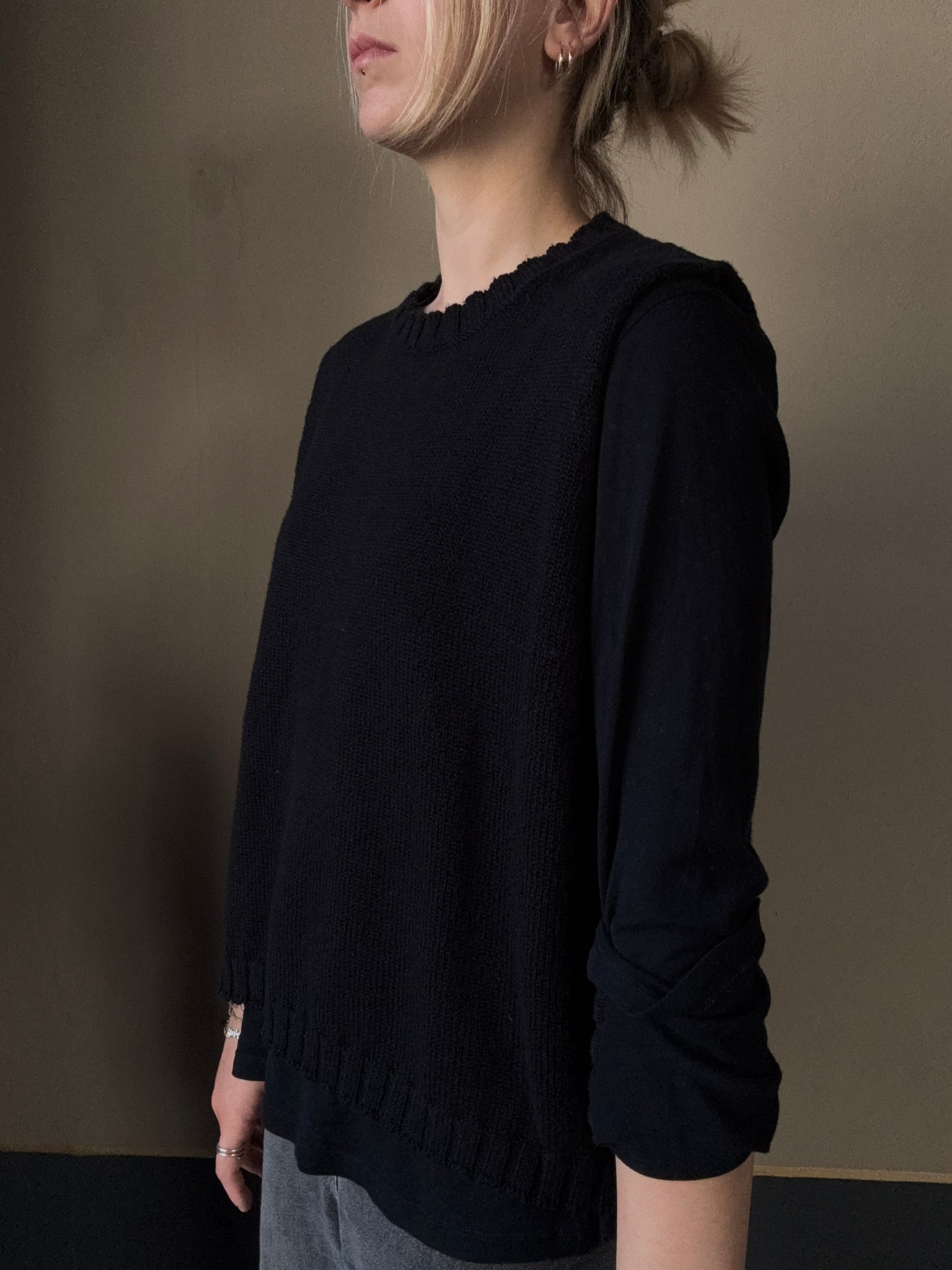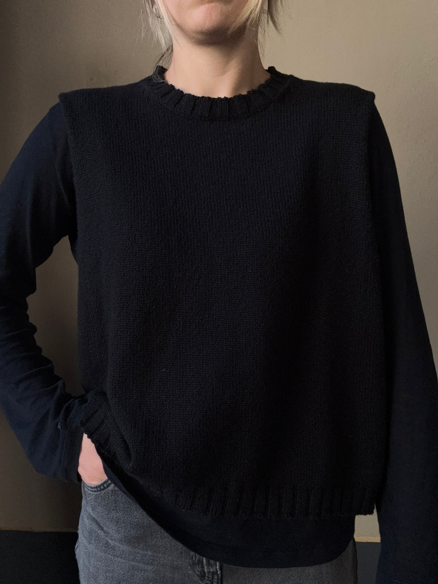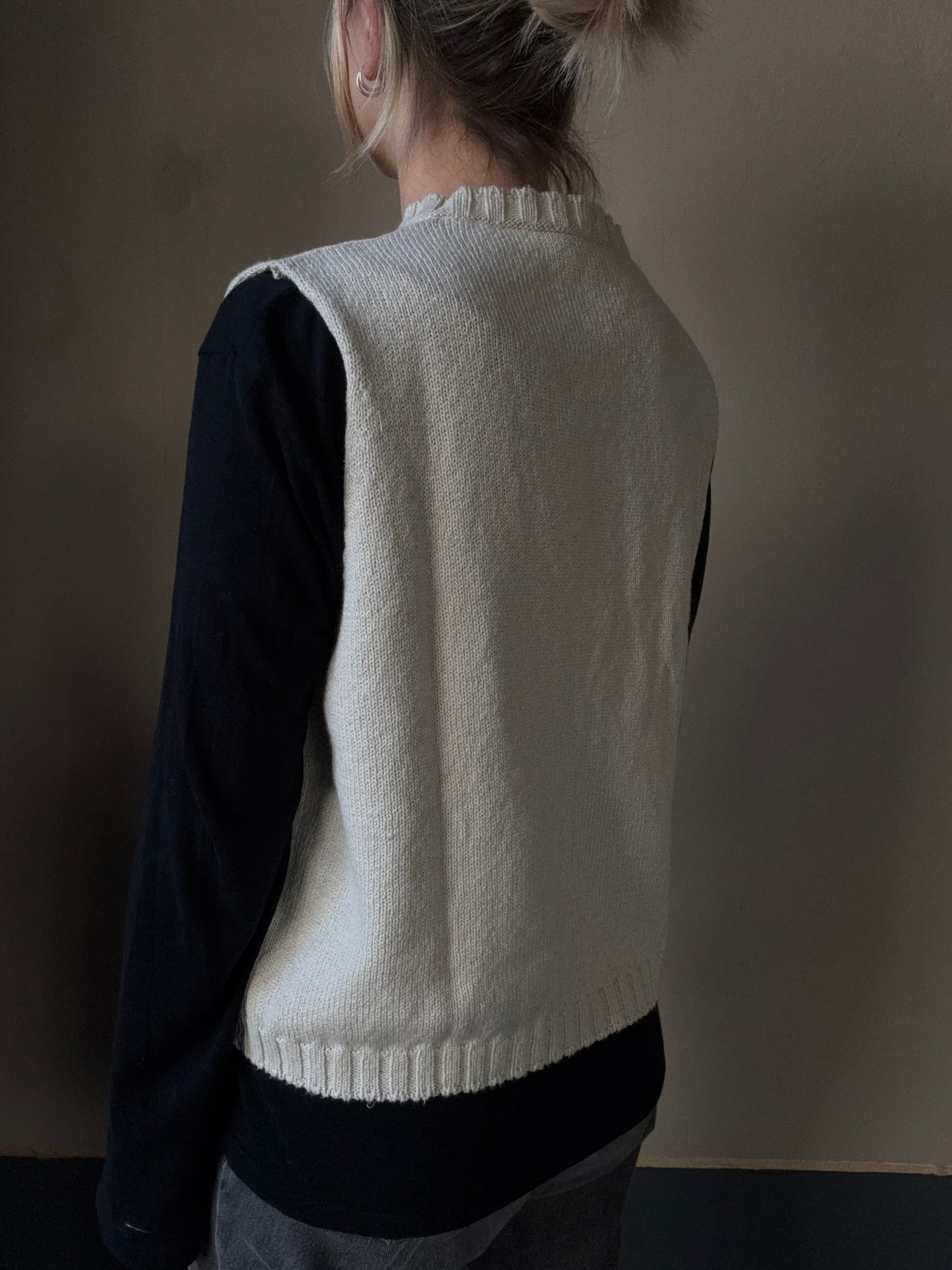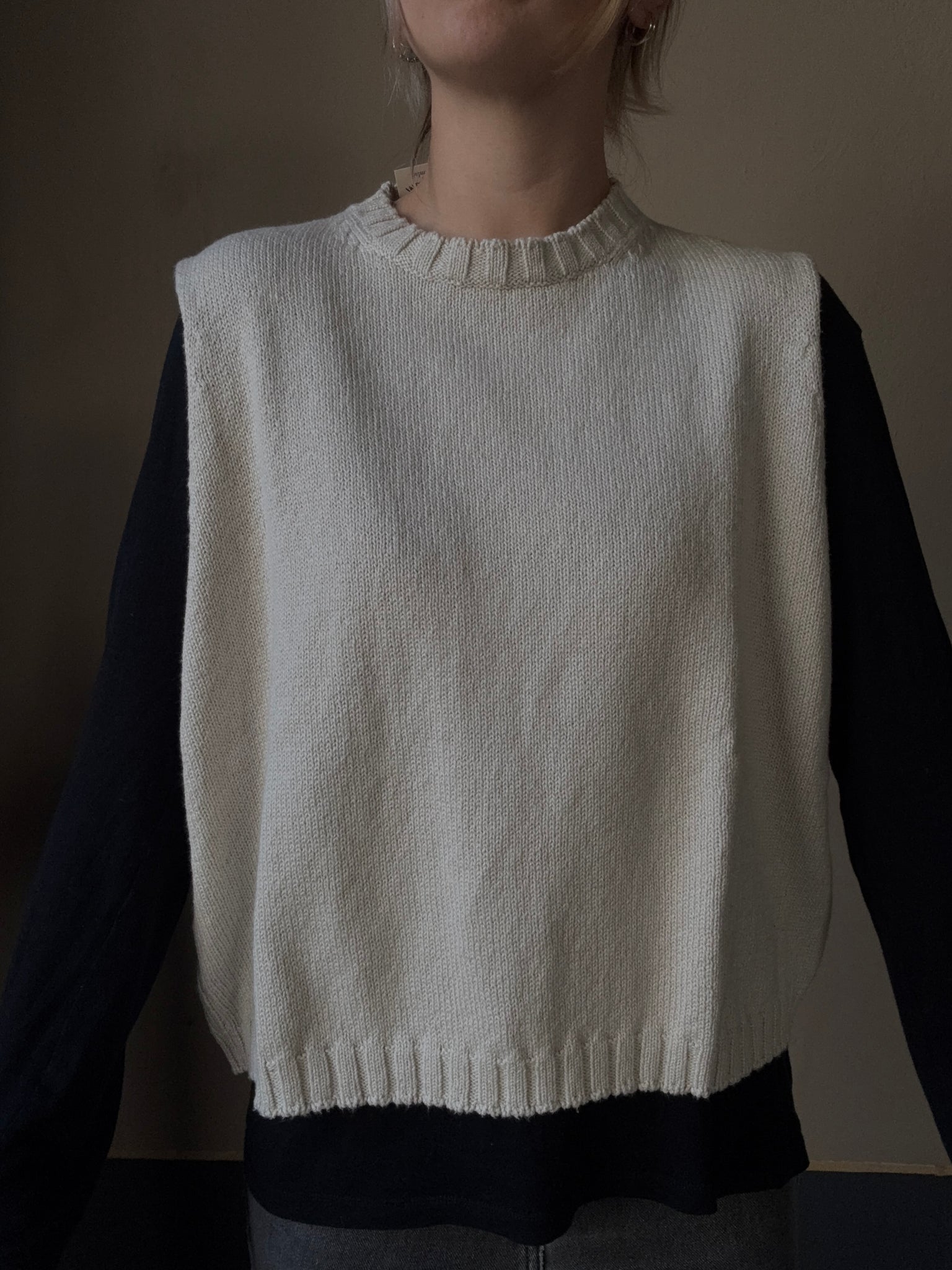 Gilet a scatola in cotone girocollo con giro manica molto ampio, perfetto da portare su t-shirt o camicie
