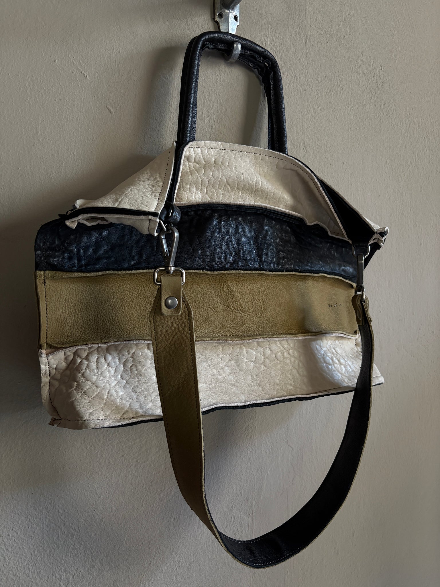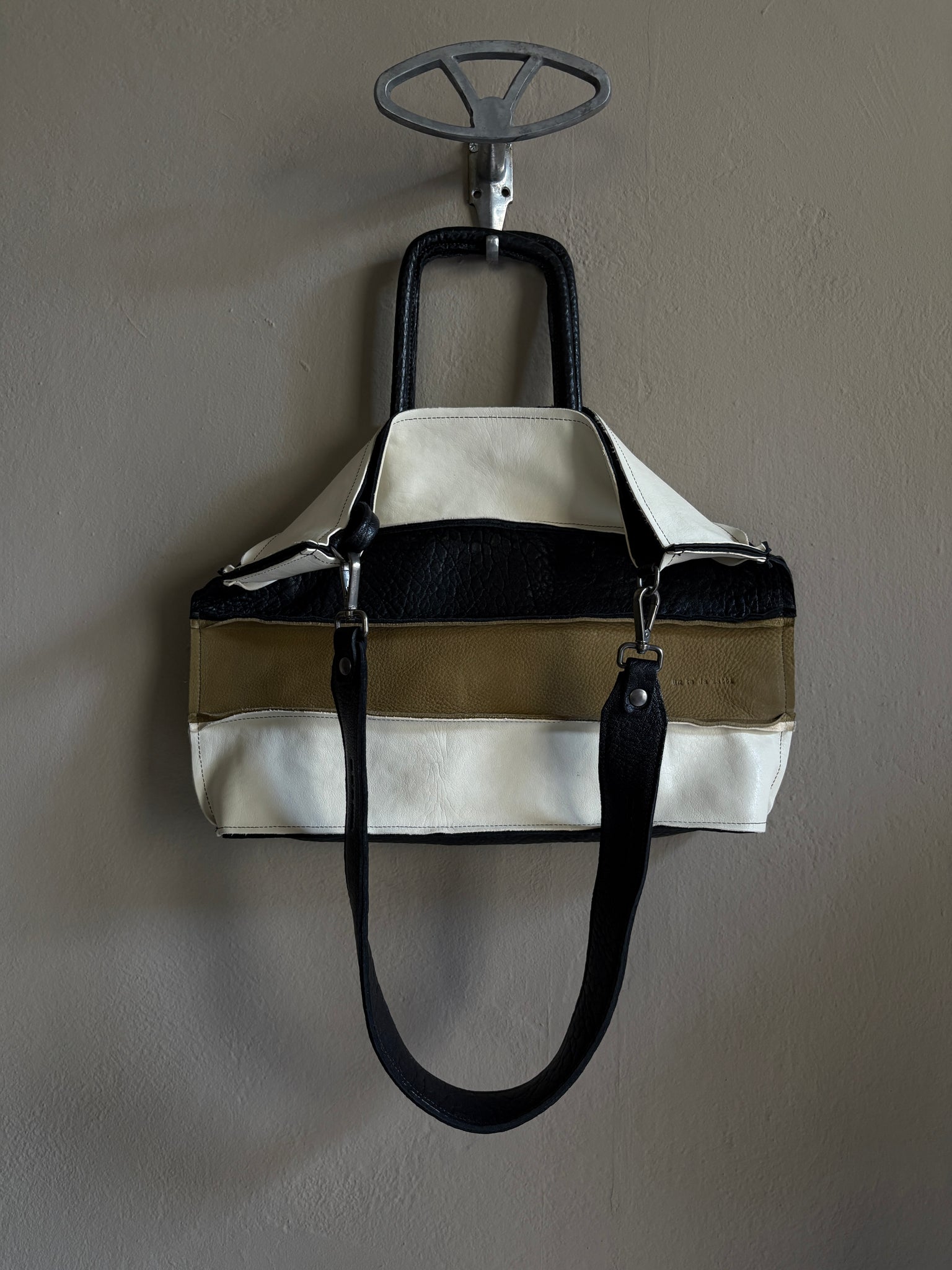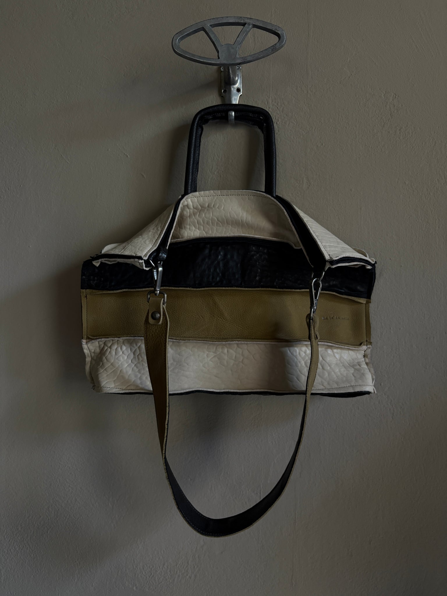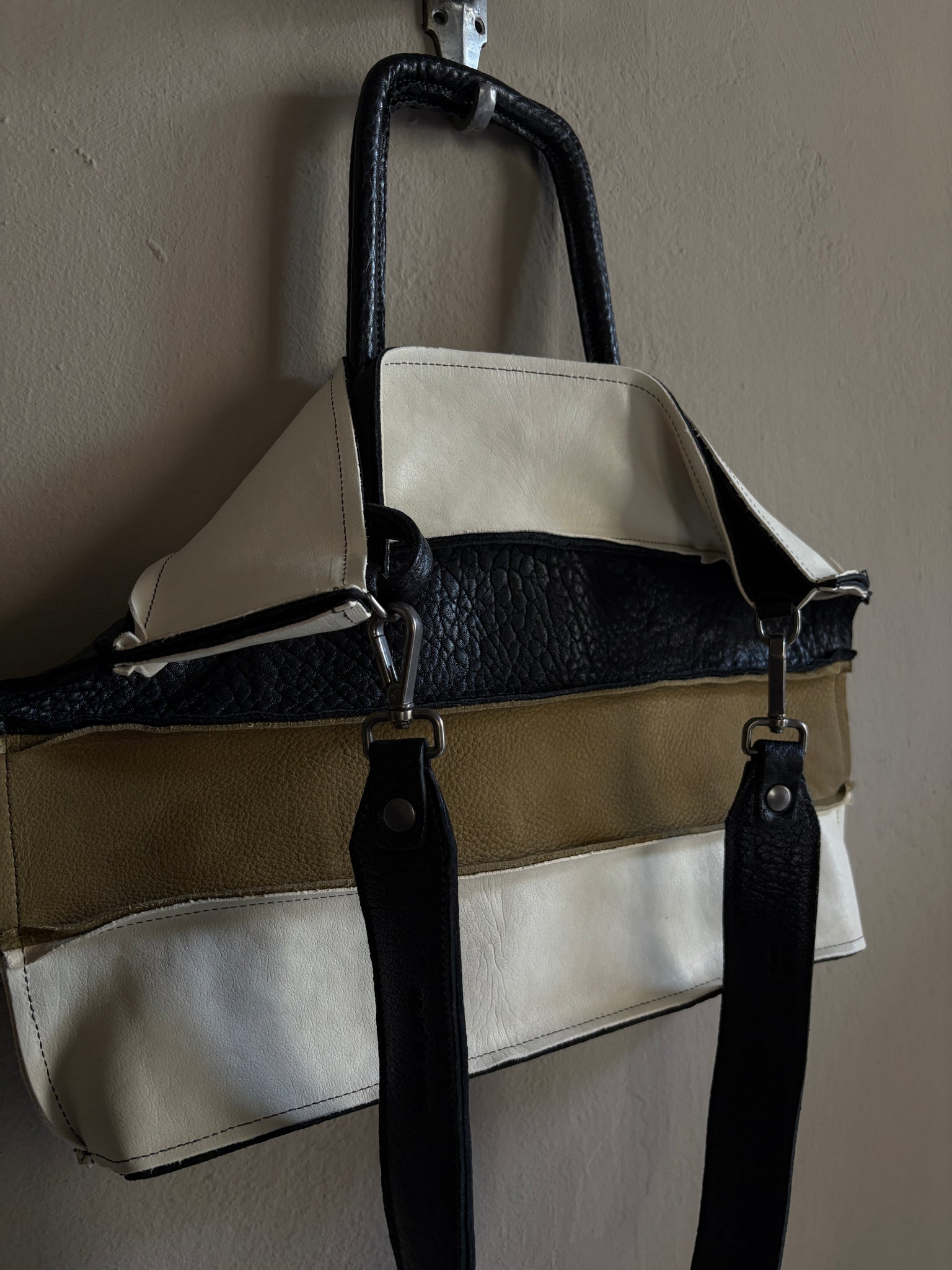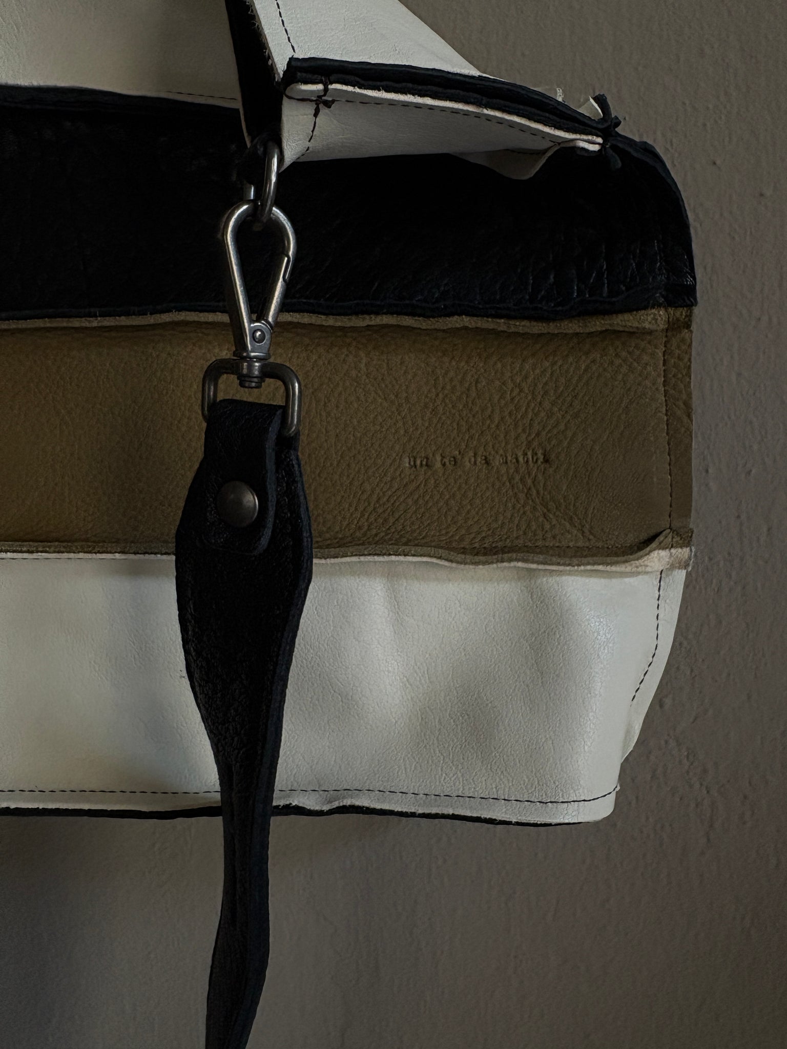 IMPORTANTE: Ogni pezzo è ripetibile ma unico, le fasce in pelle potrebbero alternarsi in modo diverso ed anche il bagno di colore dei vari pellami potrebbe essere diverso pur essendo molto simile