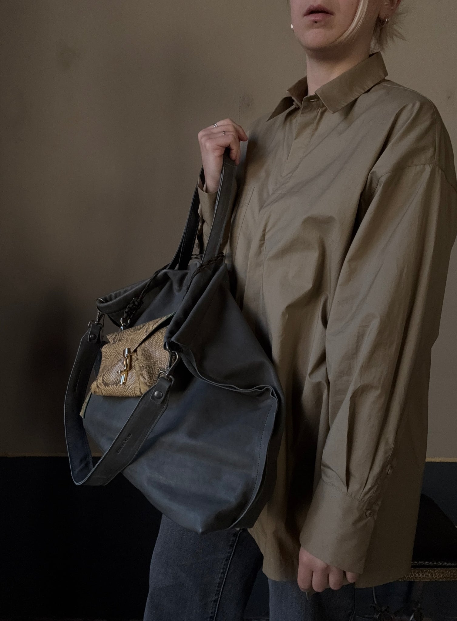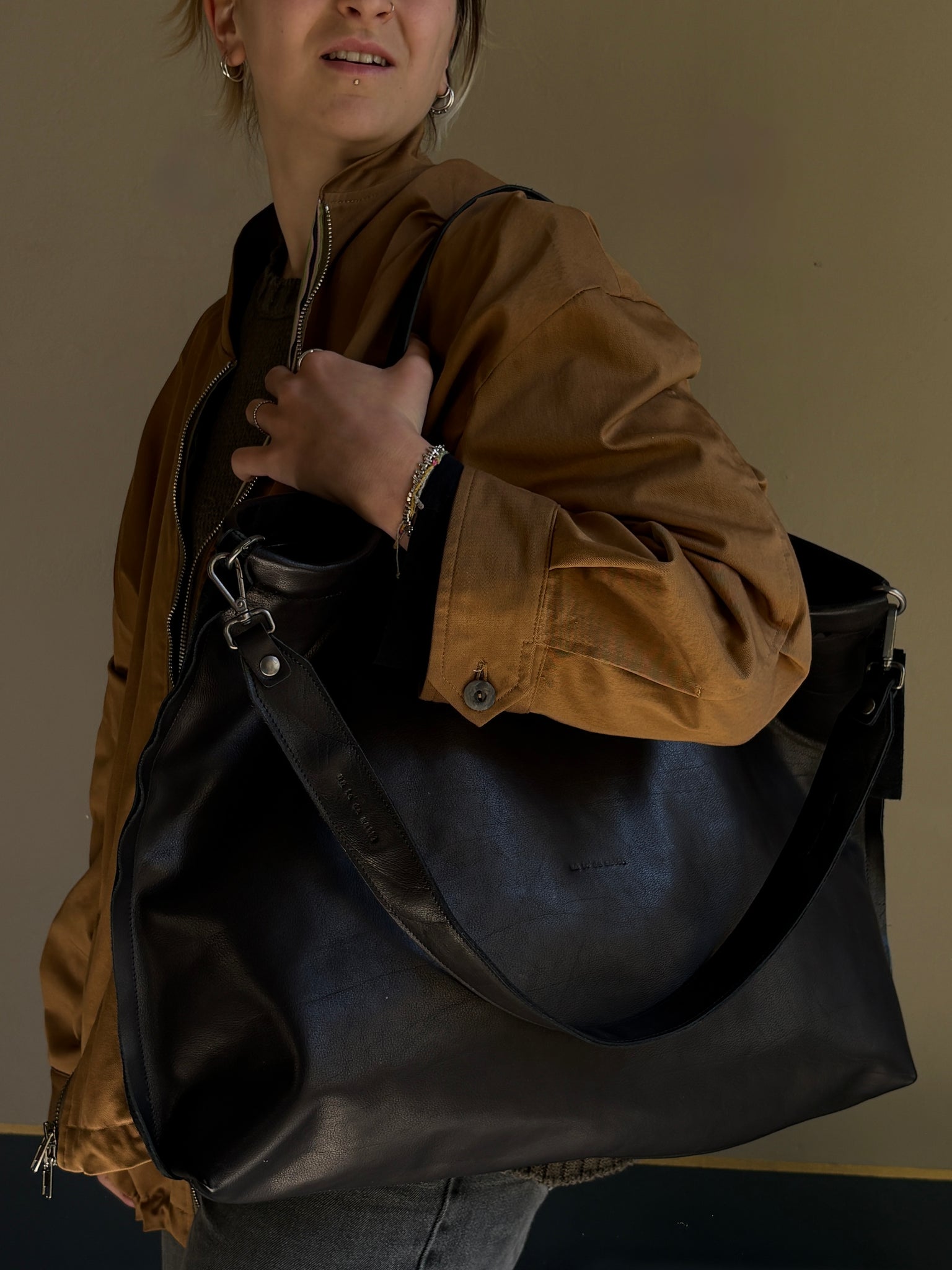 Borsa a spalla in pelle di vitello.
