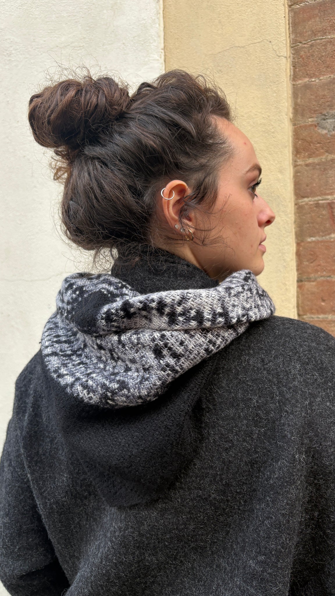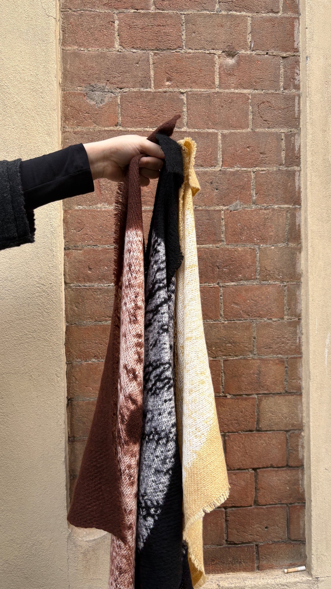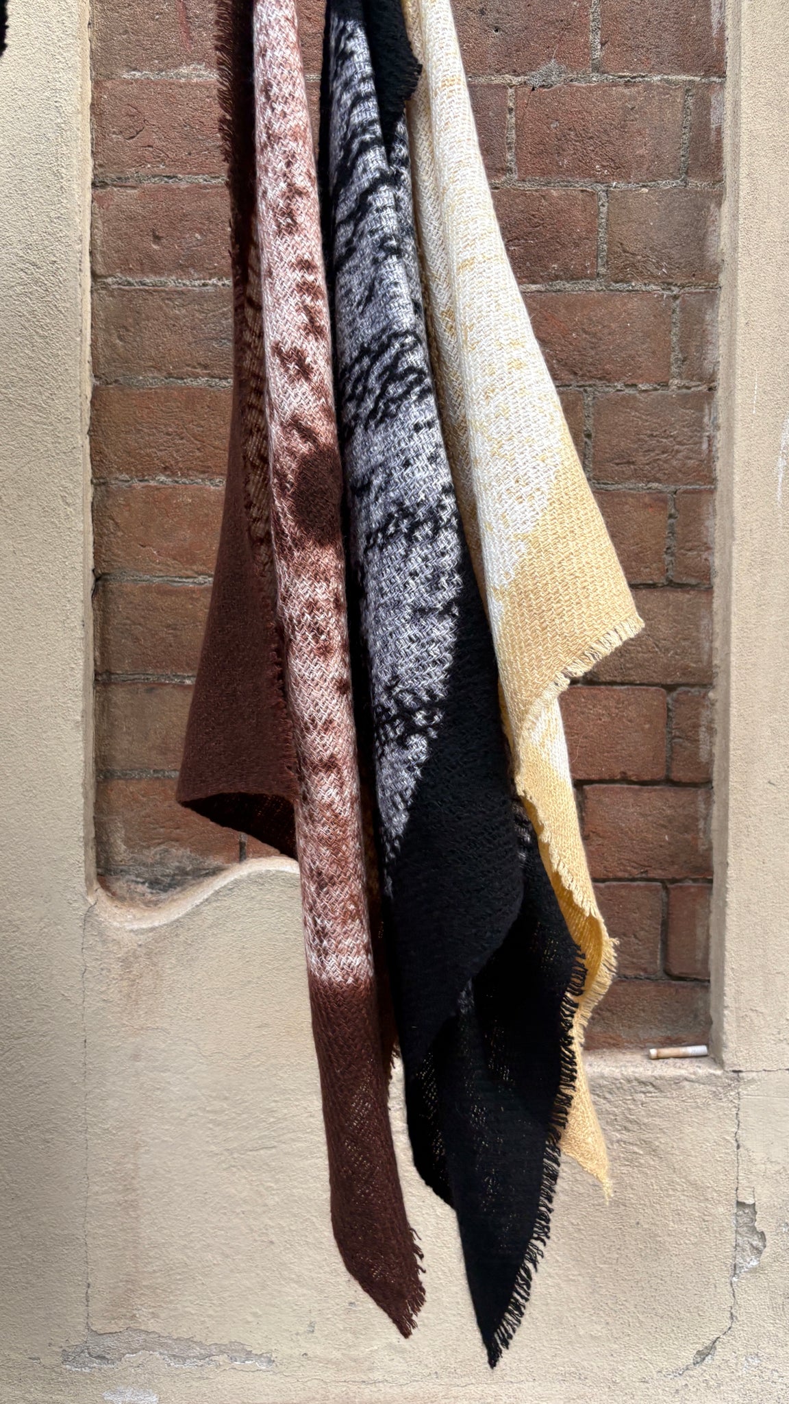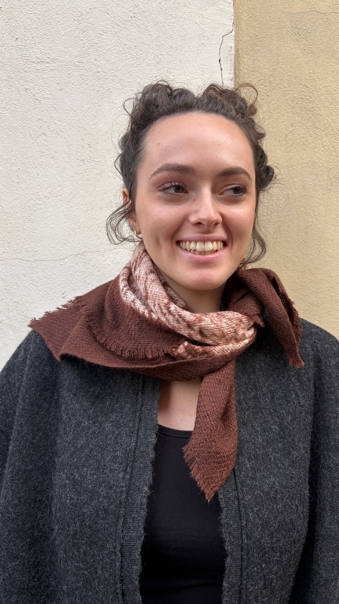 Questa eccezionale sciarpa in cashmere, filata e tessuta a mano, è tinta con la tecnica Circle Shibori. Quest'antica arte prevede di piegare, annodare e tingere il tessuto a mano, creando esclusivi motivi circolari in cui il marrone intenso e l'avorio creano un delicato contrasto.